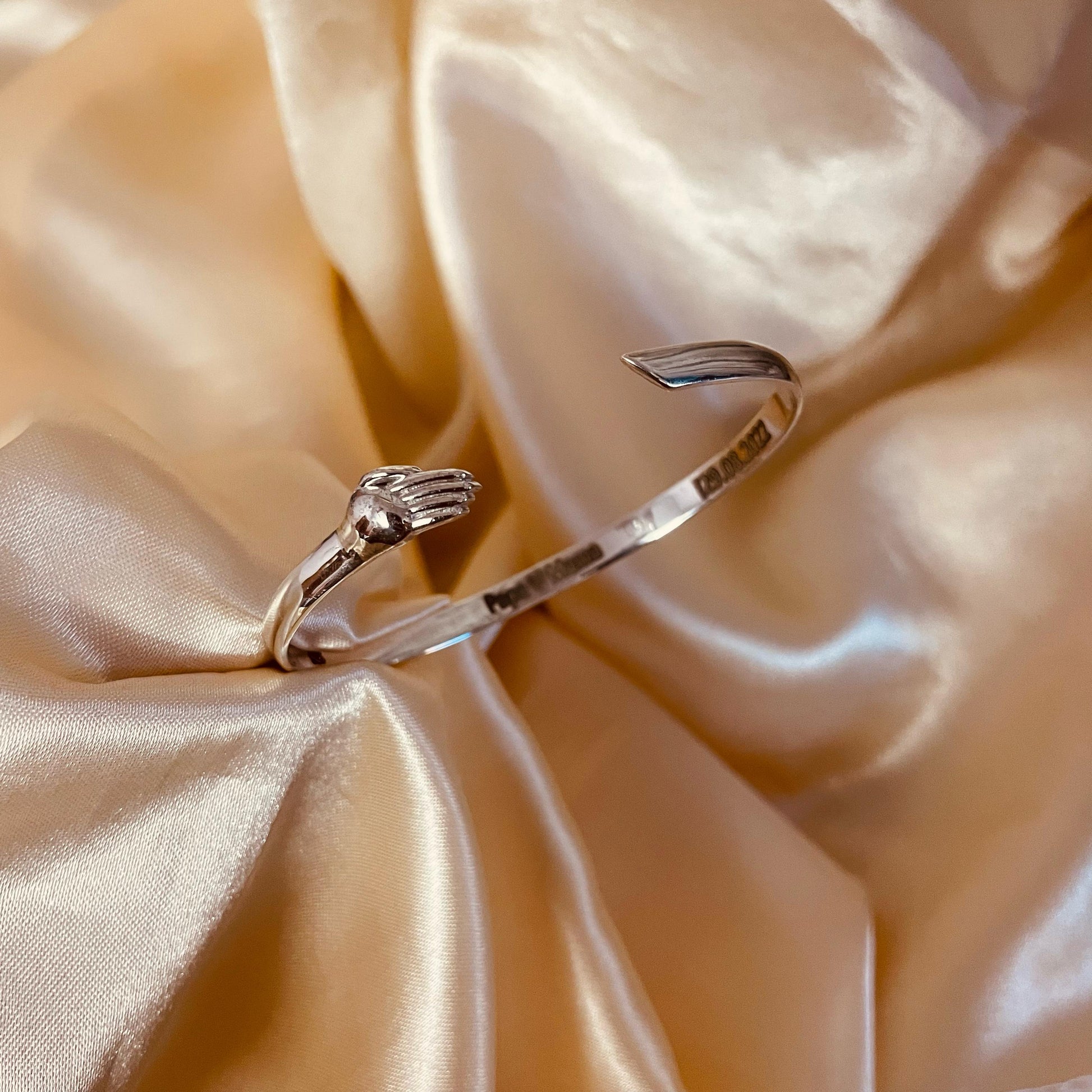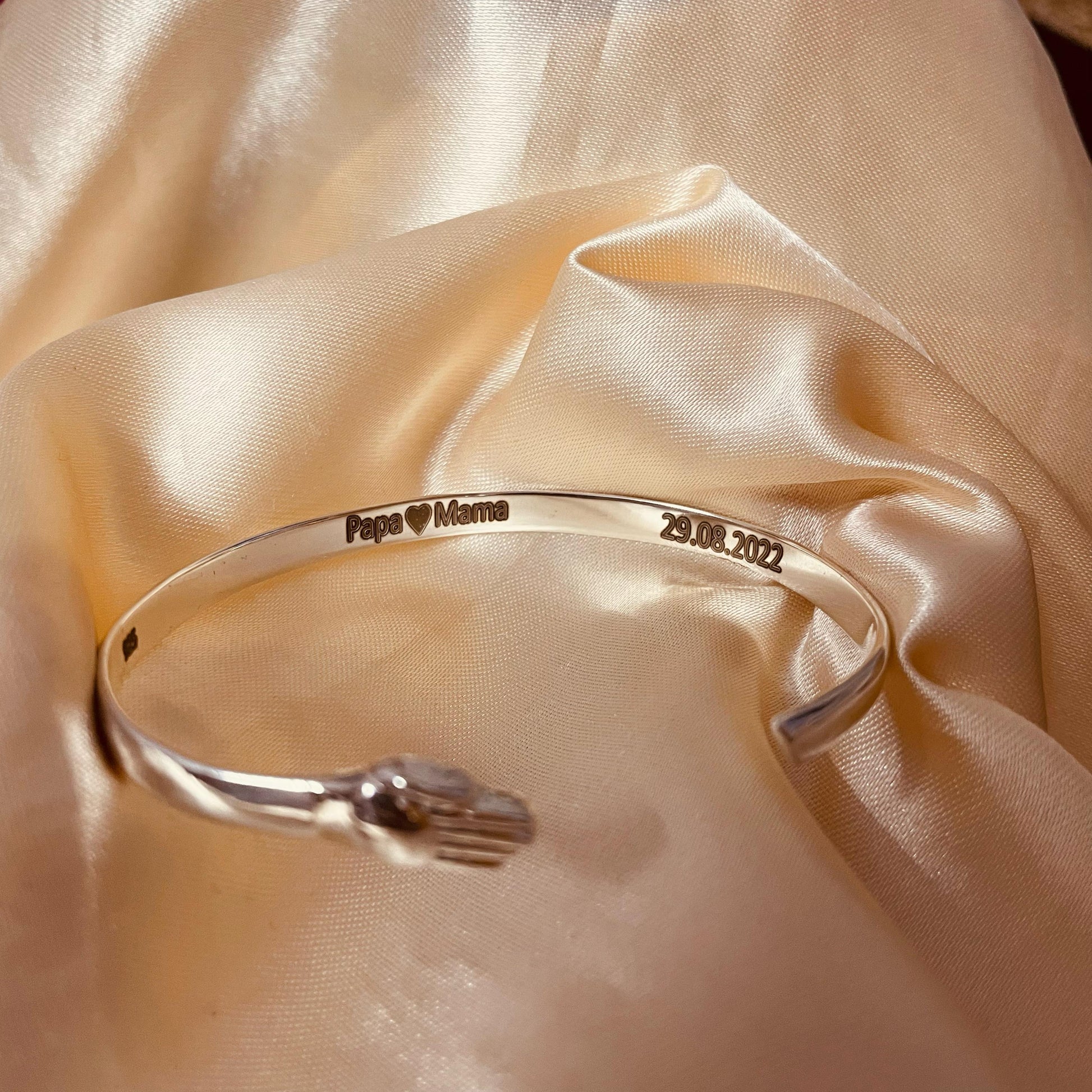 Our Side Hug Bracelet features a sleek, open cuff design with delicately sculpted hands at each end, symbolizing love, comfort, and connection. Made with high-quality sterling silver, this bracelet offers a timeless look and a deeply personal touch with custom engraving options inside. Whether it’s a special date, names, or heartfelt words — make it uniquely yours.