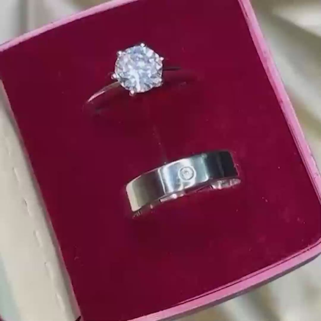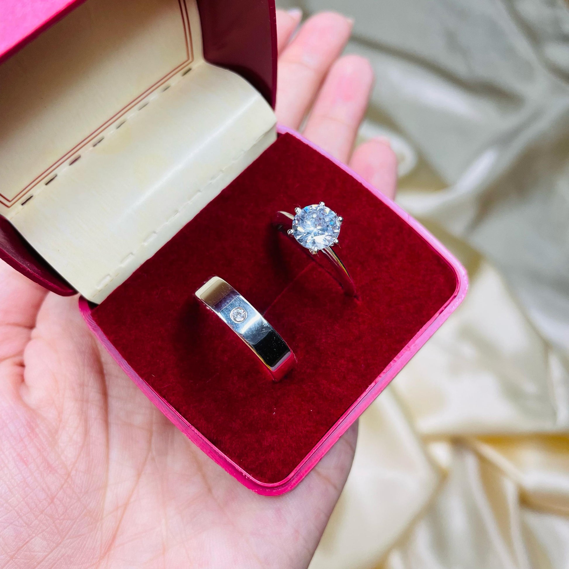 • Her Ring: A radiant solitaire centerpiece set in pure silver — bold, brilliant, and effortlessly graceful.