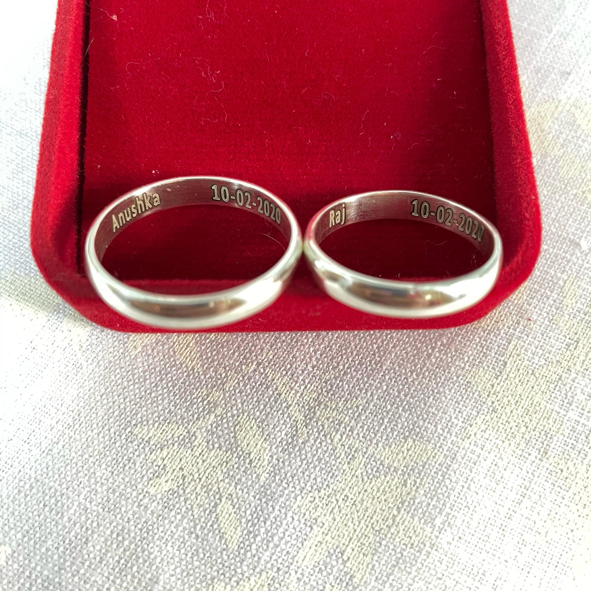 Engraving : You can get anything engraved on the outside or inside or both edges of the ring. Mention the same in respective boxes above.