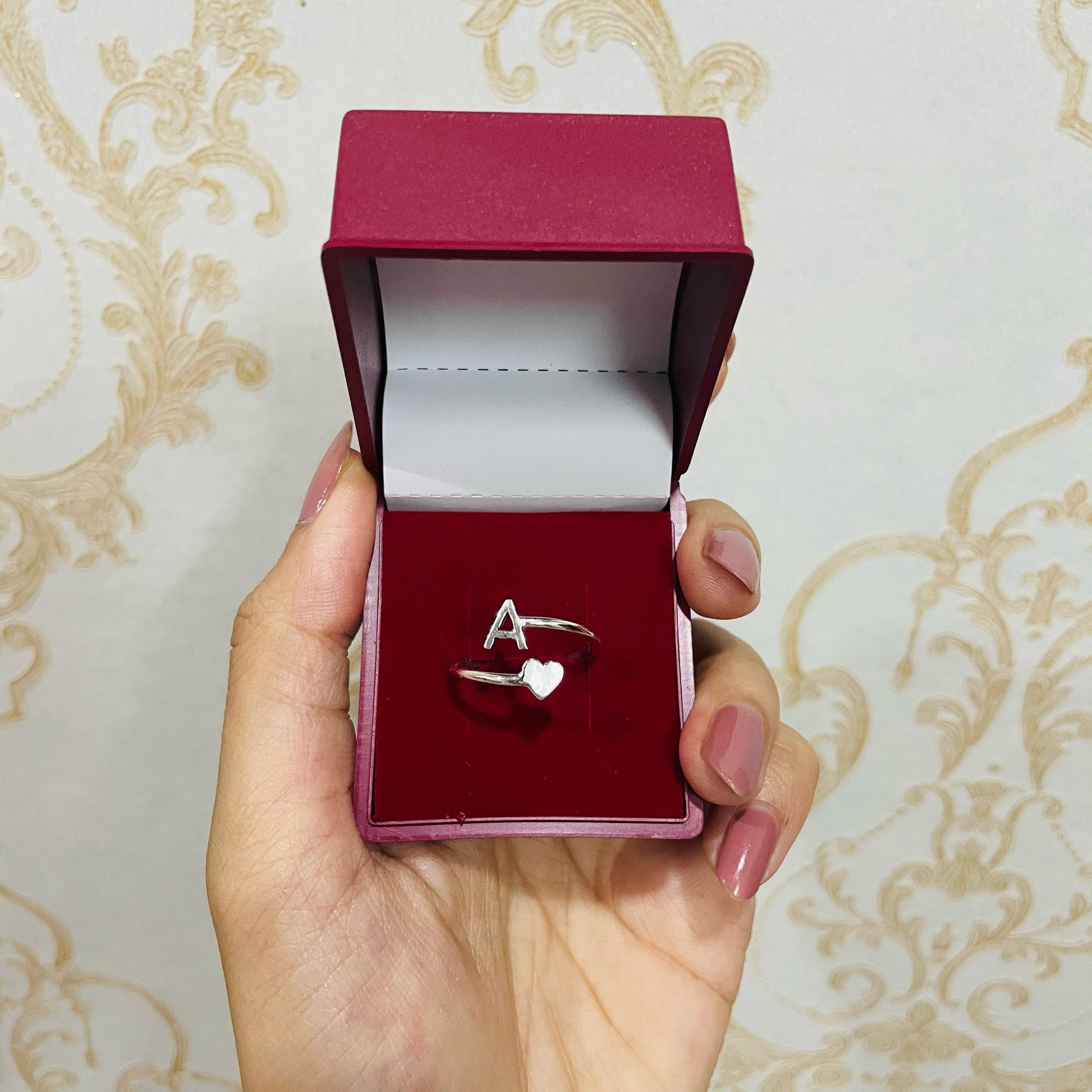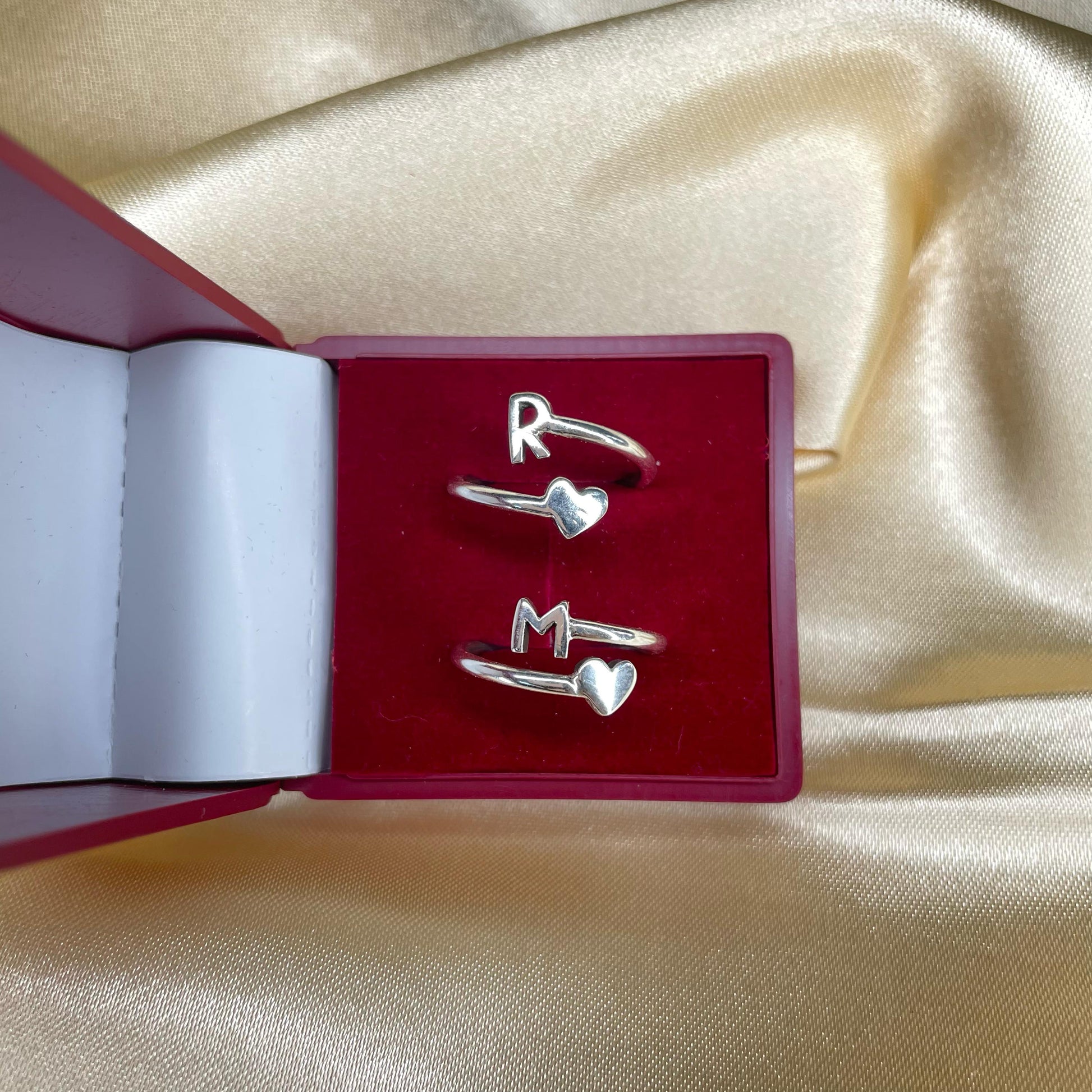 Celebrate love, connection, and individuality with our Personalized Silver Initial & Heart Ring. Handcrafted in premium 925 sterling silver, each open band features a beautifully sculpted heart on one side and a customizable initial on the other—creating the perfect balance of sentiment and style.