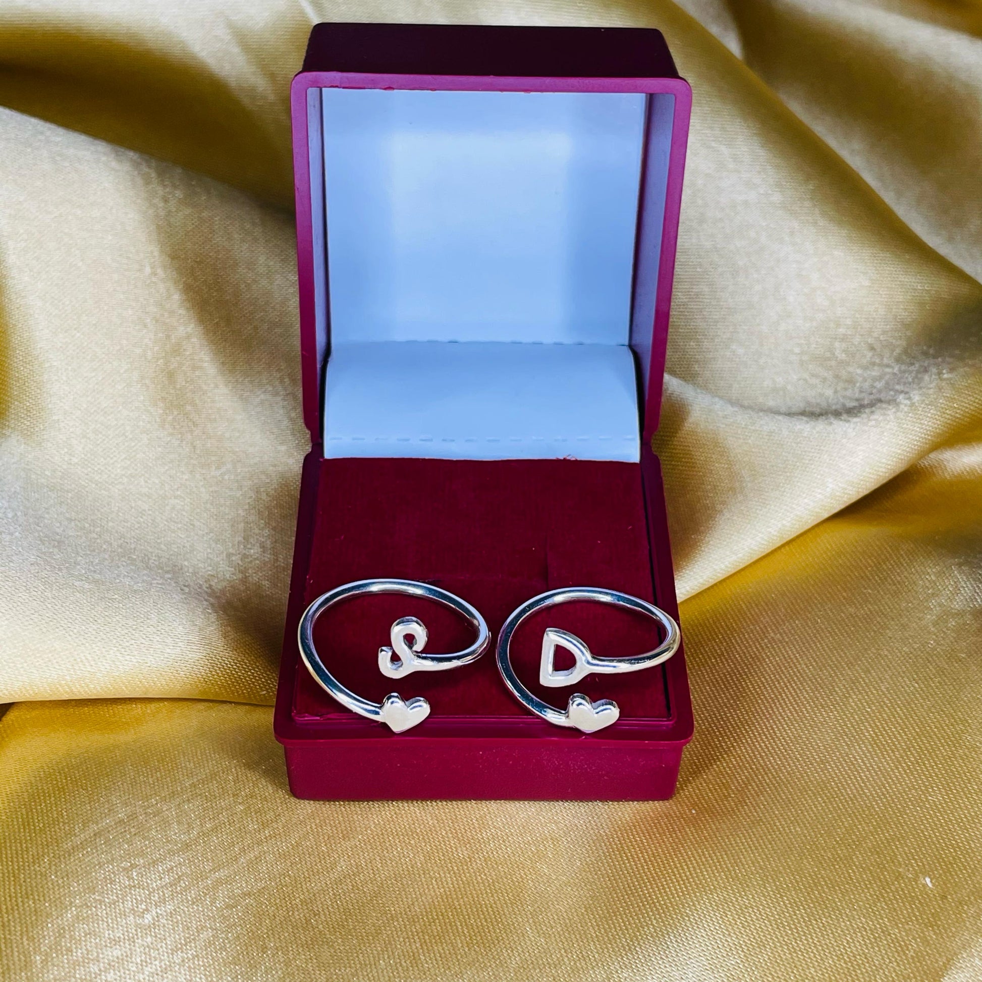 Celebrate love, connection, and individuality with our Personalized Silver Initial & Heart Ring. Handcrafted in premium 925 sterling silver, each open band features a beautifully sculpted heart on one side and a customizable initial on the other—creating the perfect balance of sentiment and style.
