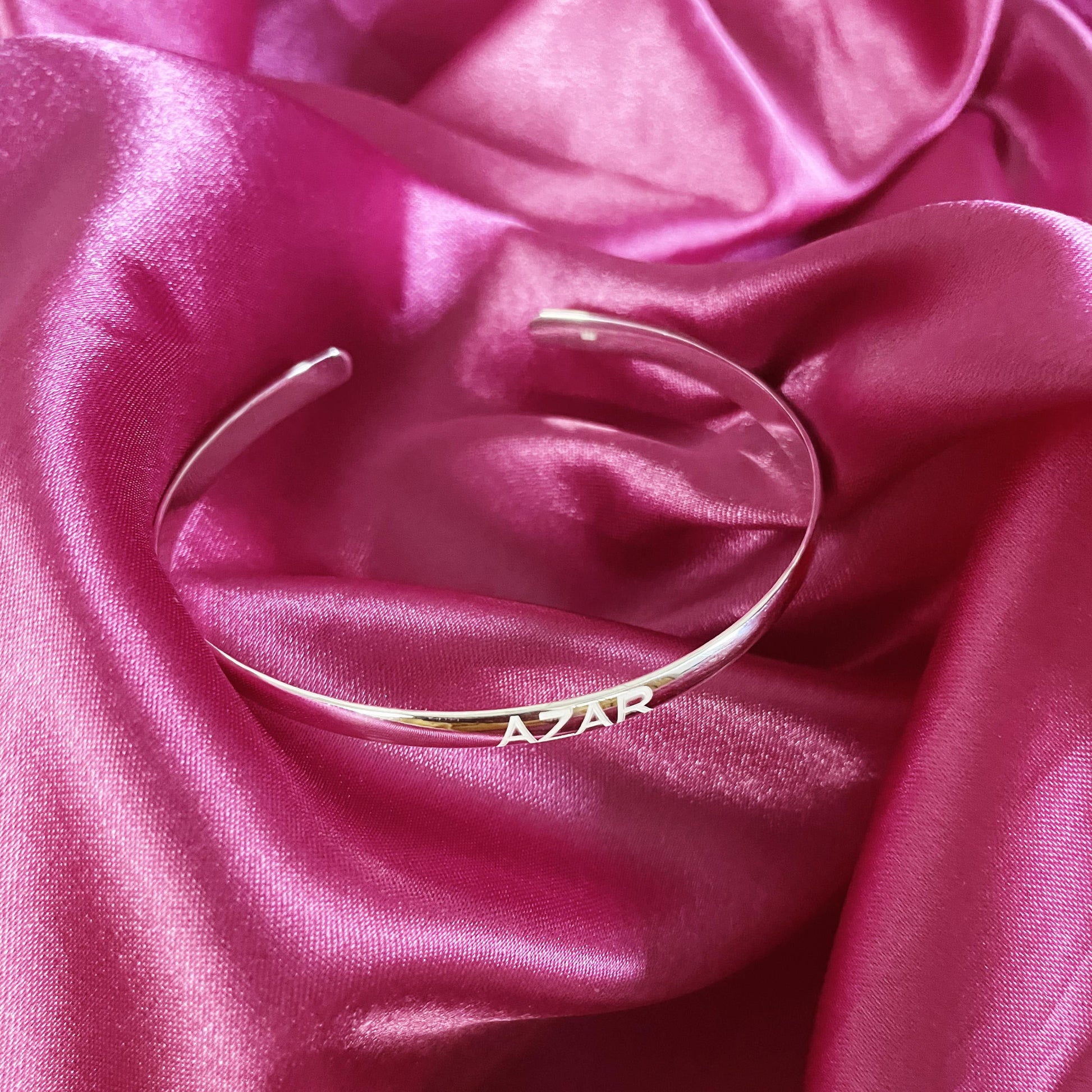 Sleek, timeless, and entirely personal — The Signature Bracelet is designed to carry your most meaningful names, dates, or words, both outside and within. Crafted in pure 925 sterling silver with a smooth, polished finish, it features a clean open cuff style that adjusts gently to fit most wrists.