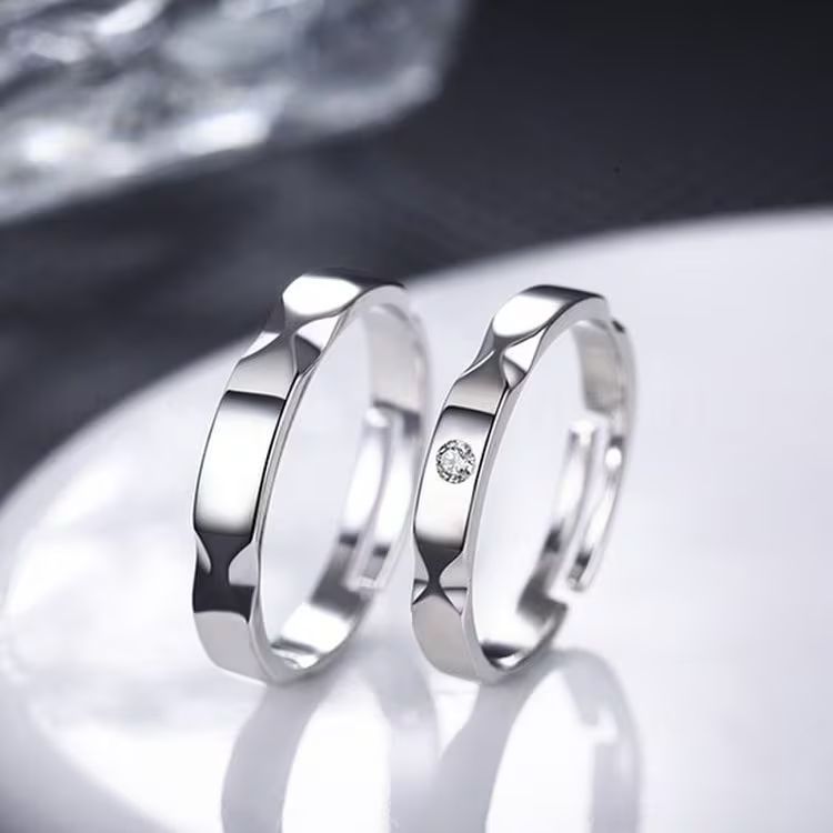 Elegant, minimal, and timeless — the Twilight Gleam ring set is a perfect harmony of design and sentiment. Crafted from premium 92.5 sterling silver, these couple rings feature a distinctive faceted surface that catches light beautifully, symbolizing the different yet complementary facets of your relationship.